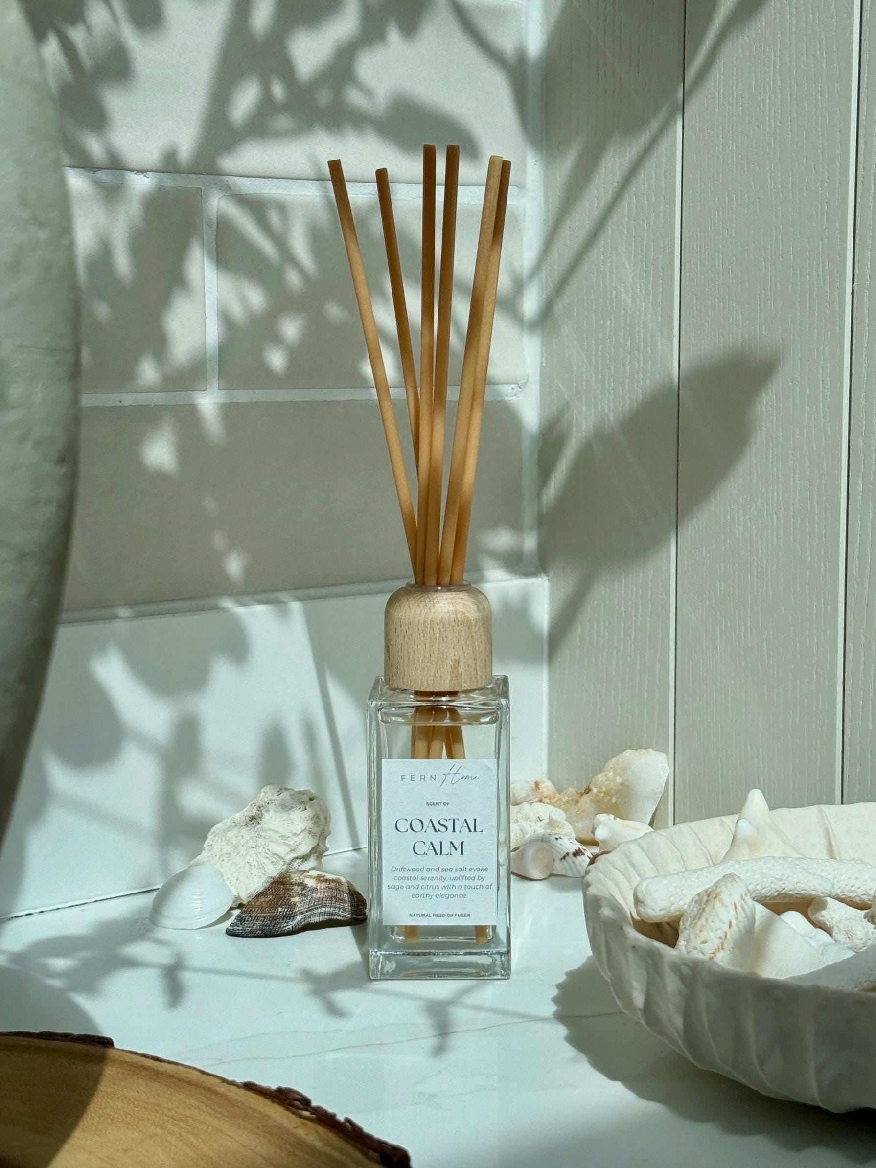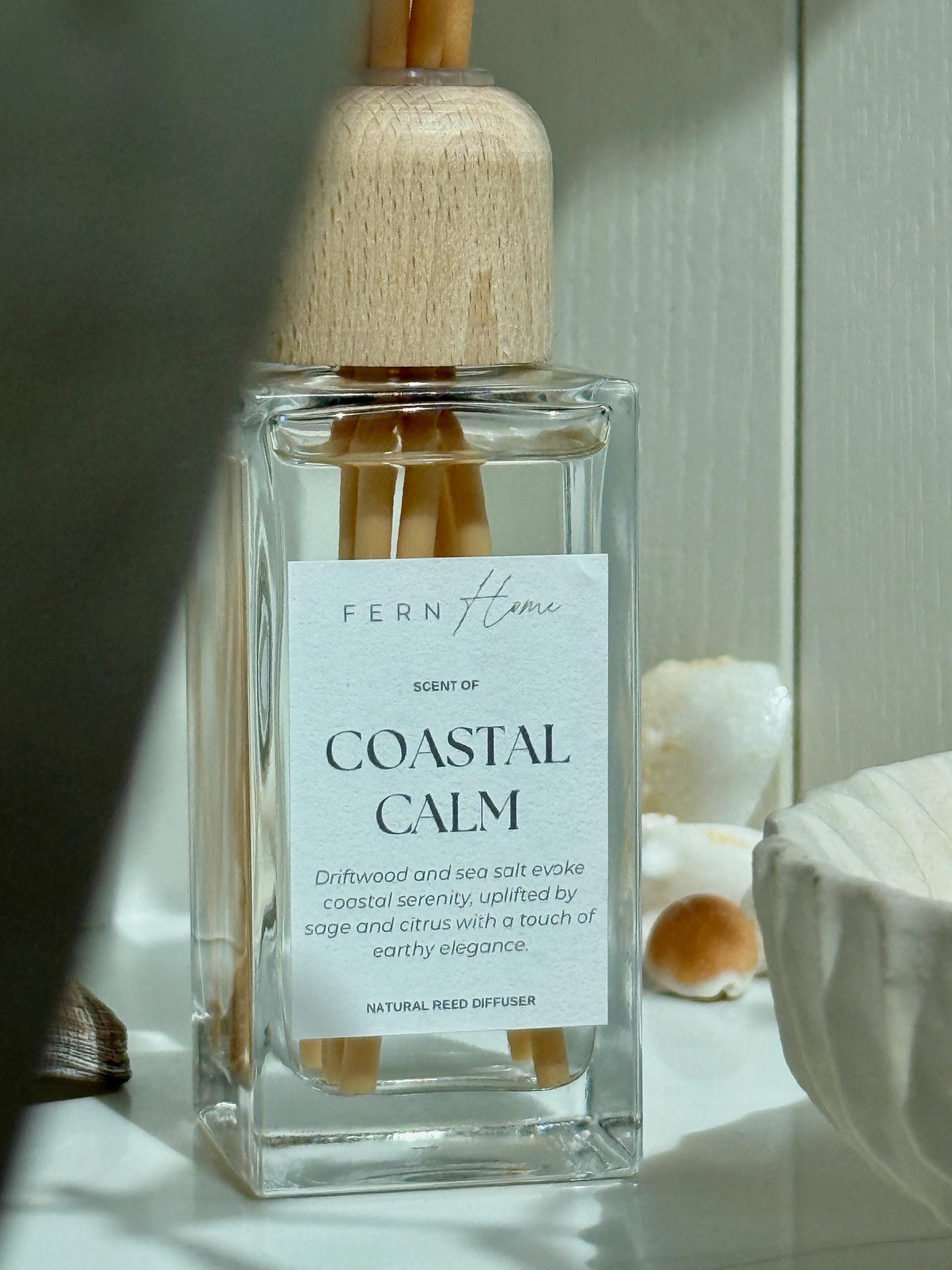 Bring the essence of a peaceful seaside escape into your home with this clean, natural reed diffuser. Coastal Calm captures the soft scent of salt in the air, warm driftwood underfoot, and a gentle breeze laced with citrus and sage. It’s grounding, refreshing, and quietly coastal – like slow mornings with the windows open and the waves humming in the distance.