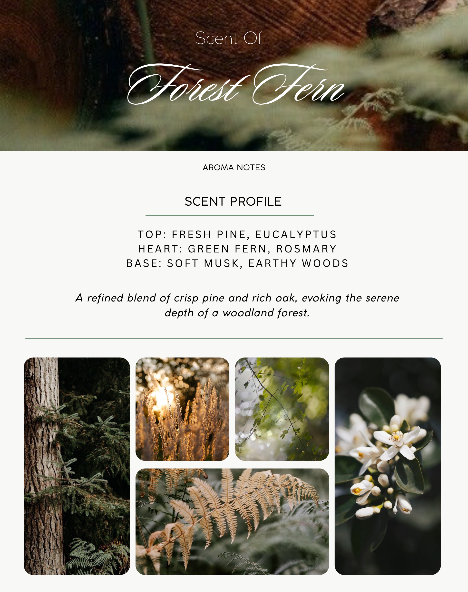 Forest Fern is grounding, calm and clean - the scent of stillness, fresh air, and quiet connection to nature.