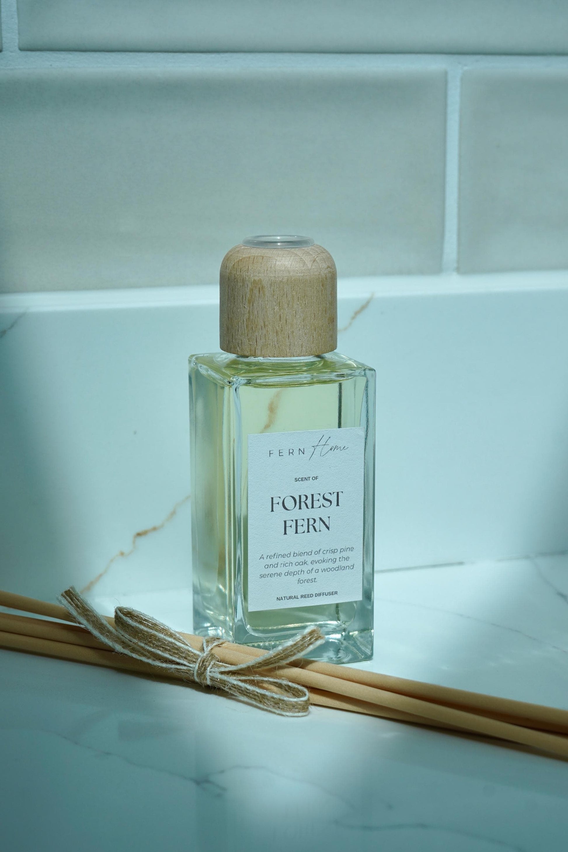 Step into the stillness of the forest with Forest Fern - a clean, natural reed diffuser that brings the crisp, earthy scent of pine needles and aged oak into your home.